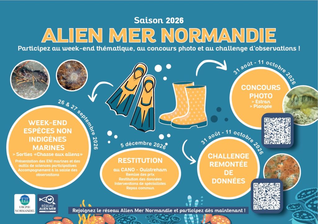 16 février 2026Pour continuer à améliorer la connaissance des Espèces Non Indigènes marines (ENI) en Normandie, plusieurs temps forts seront proposés cette année :